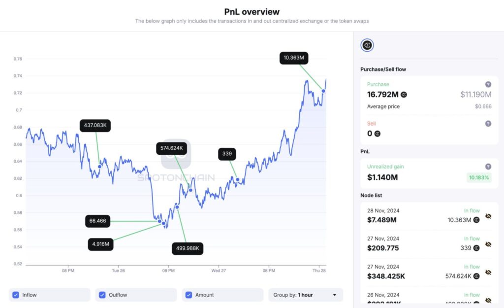 آرتور هیز توکنهای ENA را با میانگین قیمت ۰.۶۶ دلار خریداری کرده است. افزایش اخیر قیمت اتنا برای هیز سود تحقق نیافتهای حدوداً معادل ۱ میلیون دلار (بیش از ۹٪) به همراه داشته است.