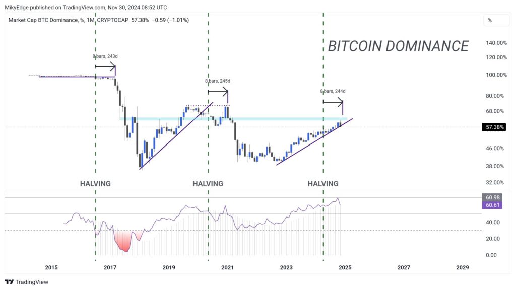 کاهش دامیننس بیت کوین – منبع: TradingView