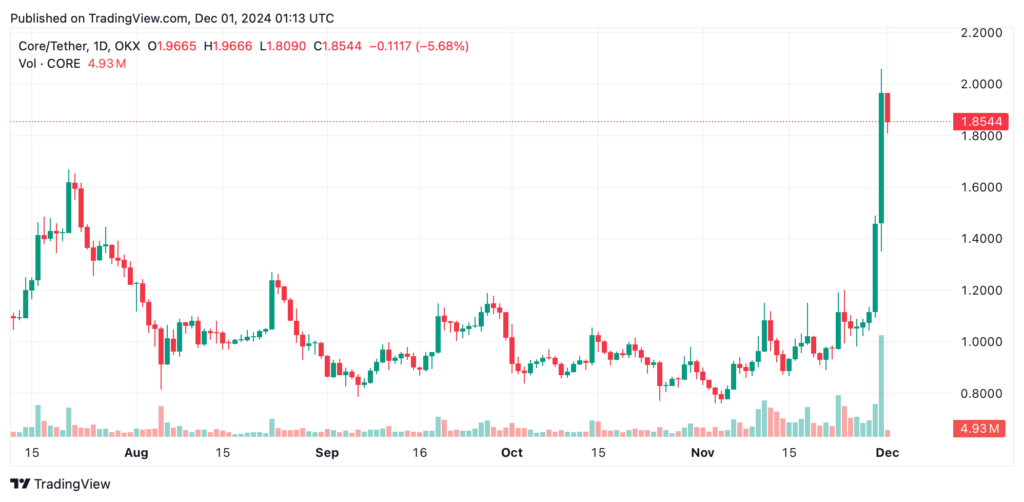 نمودار قیمت کور (CORE) – منبع: TradingView
