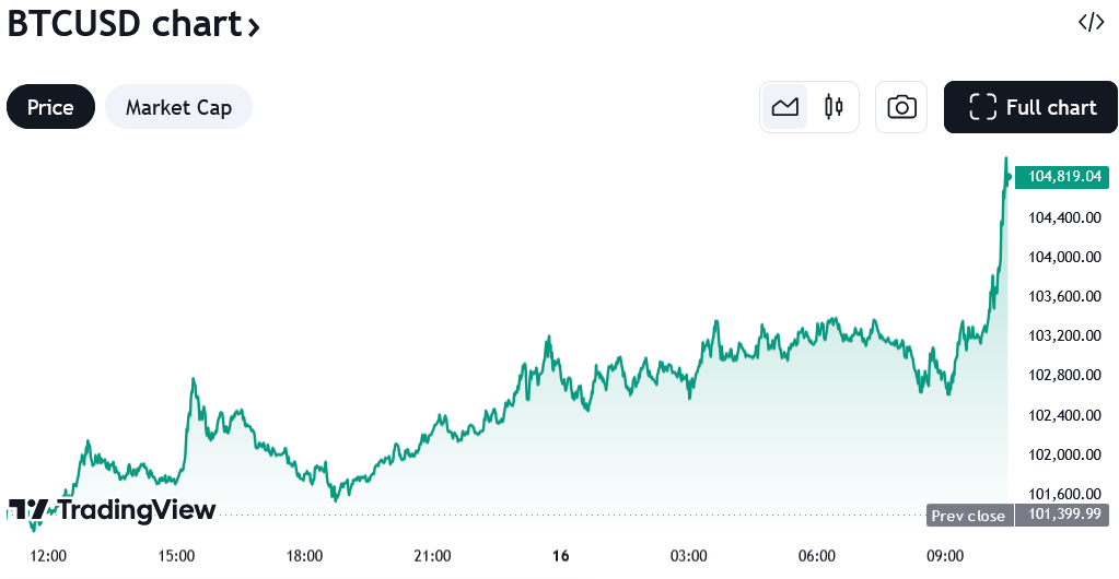 بیت کوین (BTC) با رسیدن به ۱۰۶٬۵۵۴ دلار به اوج خود رسید، اما پس از آن اندکی کاهش یافت و به ۱۰۶٬۰۰۰ دلار رسید. دادهها نشان میدهند که بالاترین قیمت قبلی بیت کوین ۱۰۴٬۰۰۰ دلار بود که در ۵ دسامبر (۱۵ آذر) ثبت شده بود.