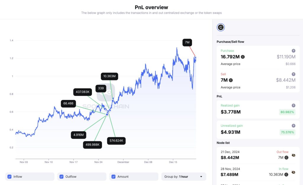 هیز در حال حاضر ۹.۹۶ میلیون ENA (به ارزش ۱۱.۷ میلیون دلار) دارد و از معاملات خود حدود ۸.۷۱ میلیون دلار سود کرده است. با این حال، قیمت اتنا در برابر فشار فروش مقاومت کرده و همچنان توانسته روند صعودی خود را حفظ کند.