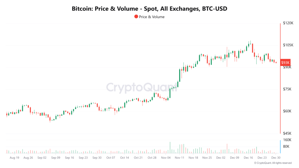 قیمت و حجم بیت کوین – منبع: کریپتو کوانت