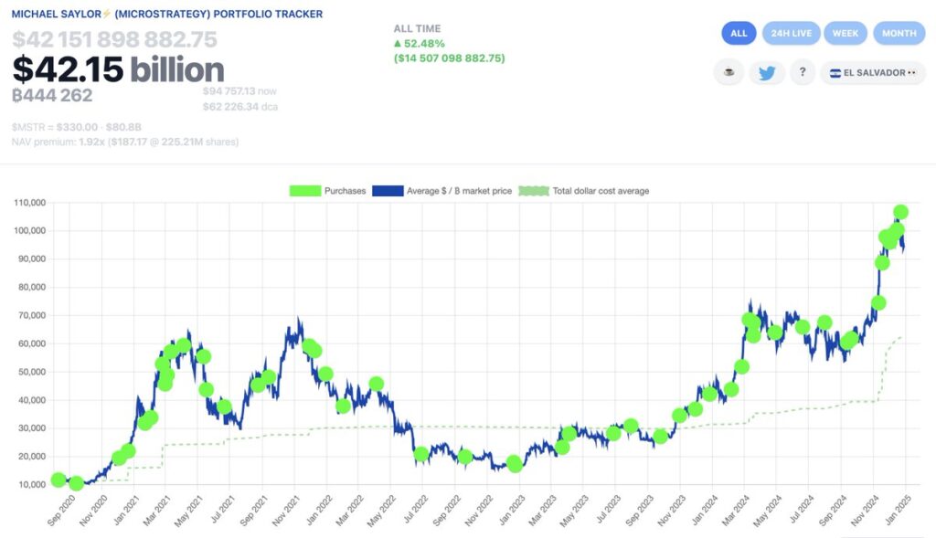 نمودار سیلور ترکر (SaylorTracker) – منبع: حساب Michael Saylor در X
