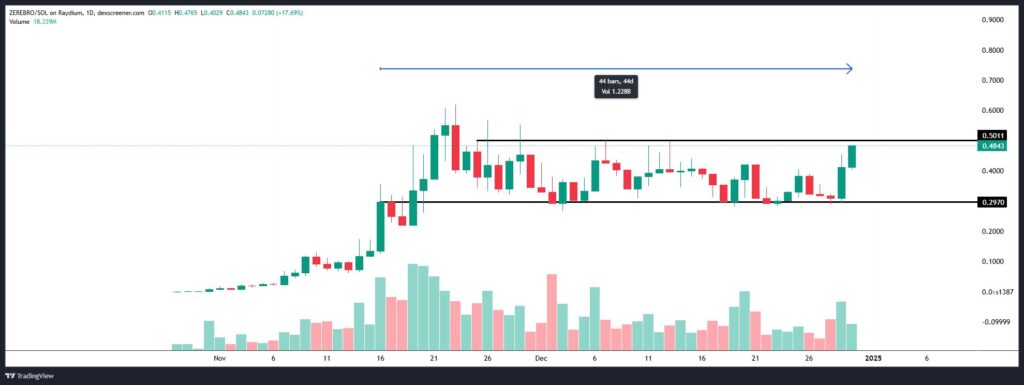 تحلیل قیمت آلت کوین ZEREBRO – منبع: حساب Altcoin Sherpa در X