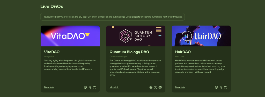 بخشی از BioDAOها – منبع: app.bio.xyz