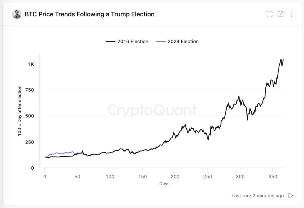 روند بیت کوین پس از انتخاب ترامپ – منبع: Ki Young Ju/X