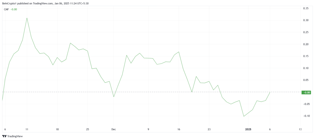 شاخص CMF که در حال حاضر نزدیک به خط صفر است، در آستانه ورود به منطقه صعودیست. این یک نشانه واضح از افزایش ورودیهاست و بیانگر آن است که سرمایهگذاران در حال تزریق سرمایه به این ارز دیجیتال هستند.