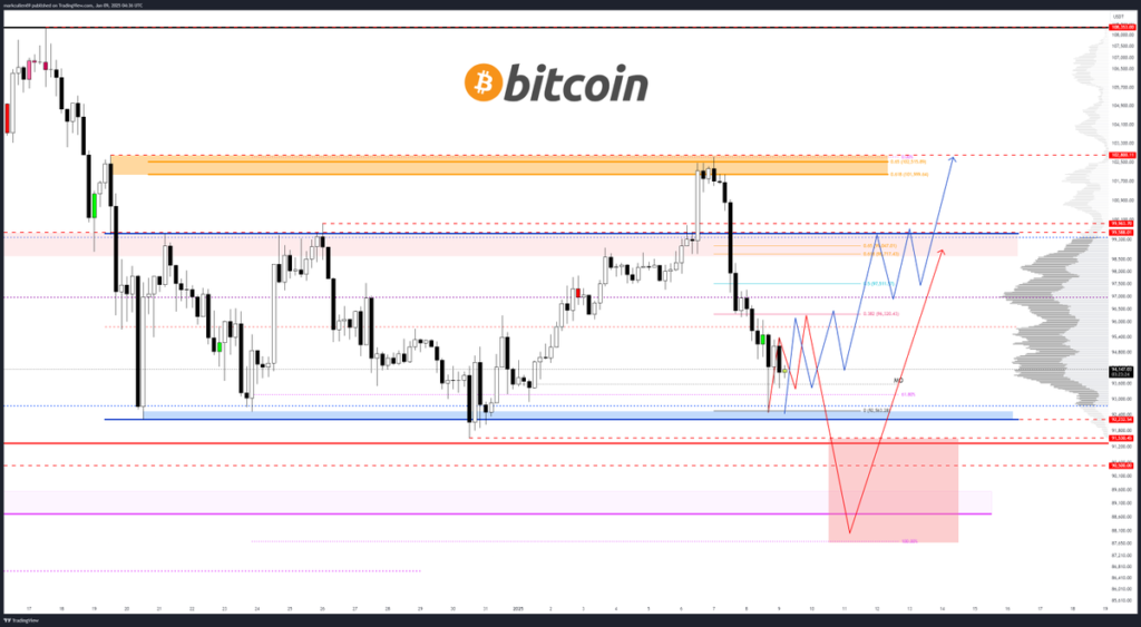 بیت کوین در روز گذشته محدوده حمایتی ۹۵,۰۰۰ تا ۹۷,۰۰۰ دلار را شکسته و به پایینترین سطح این محدوده رسیده است.