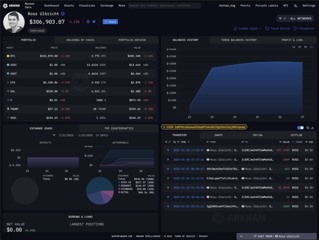 راس اولبریکت، بنیانگذار پلتفرم Silk Road، یا فردی که کنترل کیف پول او را در اختیار دارد، در نتیجه یک اشتباه در اضافه کردن نقدینگی به استخر توکن Pumpfun در شبکه سولانا، حدود ۱۲ میلیون دلار ضرر کرد. این اشتباه از آنجا آغاز شد که آدرس مربوط به کمکهای مالی راس اولبریکت ۵۰٪ از عرضه توکن ROSS را دریافت کرد. اما به دلیل خطای عملیاتی، ۳۵٪ از این عرضه (معادل ۱۰.۵ میلیون دلار) از دست رفت.