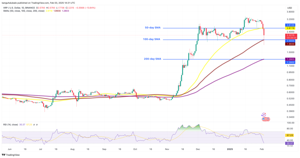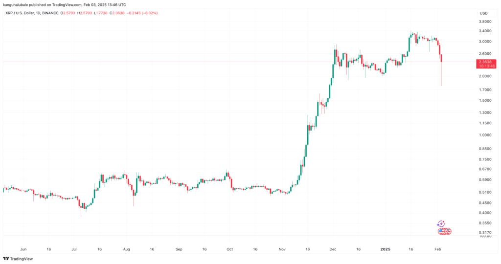 در تاریخ ۳ فوریه، قیمت XRP از سطح ۲.۵۰ دلار نیز پایینتر رفته و به حرکت نزولی خود ادامه داد.