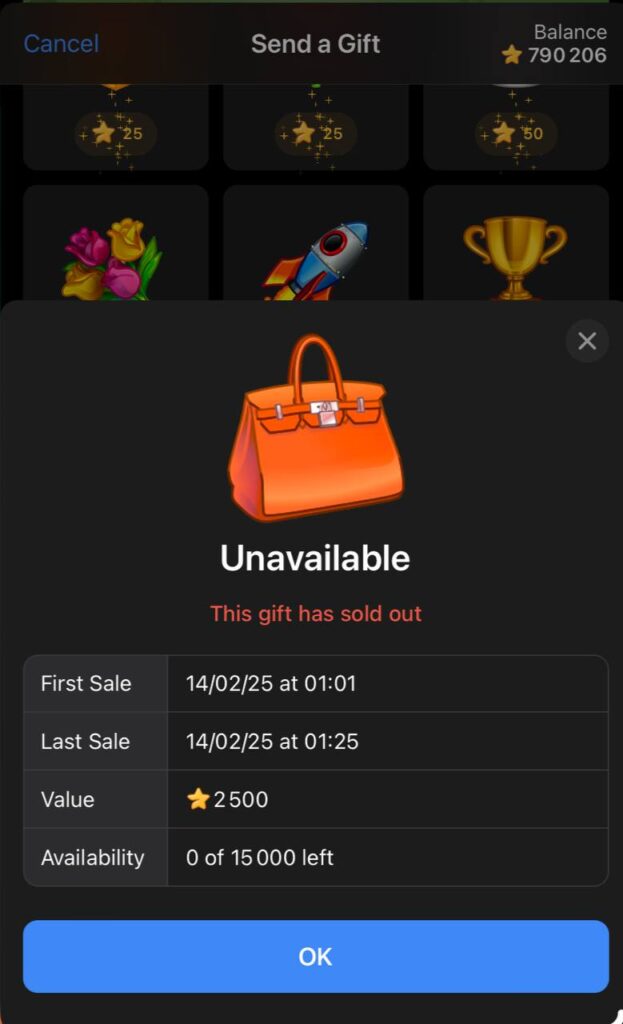 تلگرام روز جمعه، ۱۴ فوریه پس از درخواستهای متعدد کاربران از اکتبر ۲۰۲۴، از ۹ هدیه ویژه روز ولنتاین رونمایی کرد که با استقبال گسترده کاربران مواجه شد.