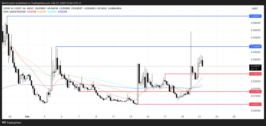 تحلیل قیمت آلت کوین دوج ایآی (DOGEAI) – منبع: TradingView