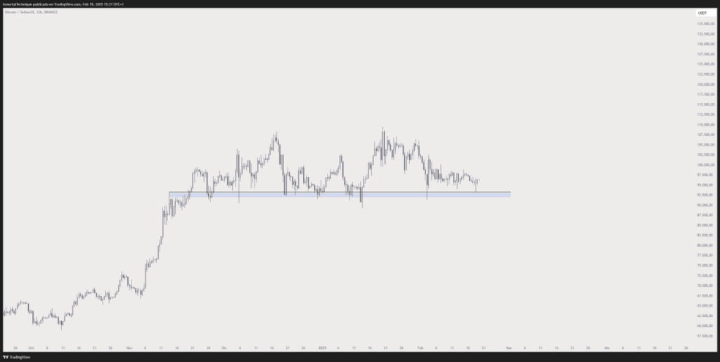 اینمورتال همچنین نسبت به قیمت بیت کوین خوشبین است، زیرا این ارز دیجیتال همچنان سطح ۹۲,۵۰۰ دلار را به عنوان حمایت کلیدی در تایمفریم ۱۲ ساعته حفظ کرده است. او در این باره نوشت: