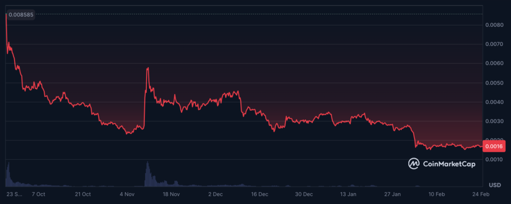 عملکرد قیمت توکن همستر کامبت (HMSTR) از اکتبر گذشته – منبع: CoinMarketCap