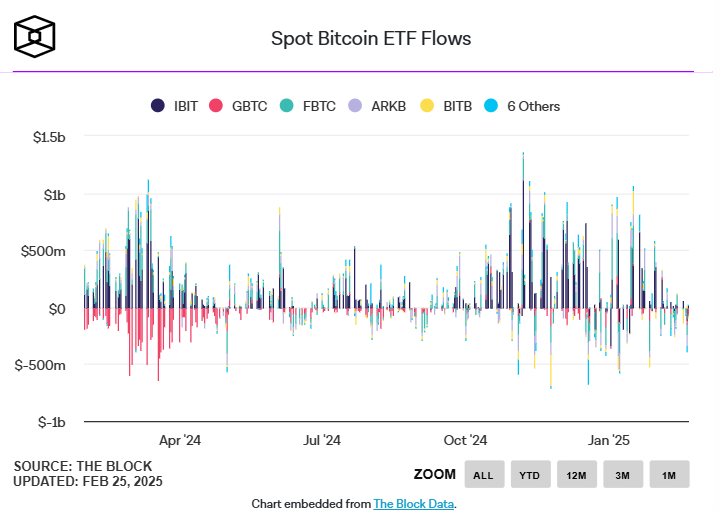 جریان ETFهای اسپات بیت کوین – منبع: دبلاک