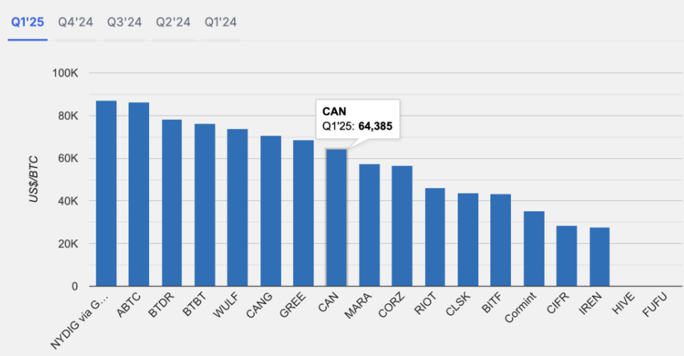 طبق گزارش TheMinerMag، هزینه هش ناوگان در شرکتهای عمومی در سهماهه اول سال بهطور میانگین ثابت و حدود ۳۴,۰۰۰ دلار بهازای هر پتاهش در ثانیه باقی مانده است. اما برخی شرکتها مانند تراولف (Terawulf) و بیتدیر (Bitdeer) با افزایش بیش از ۲۵٪ در هزینههای تولید روبهرو شدهاند.