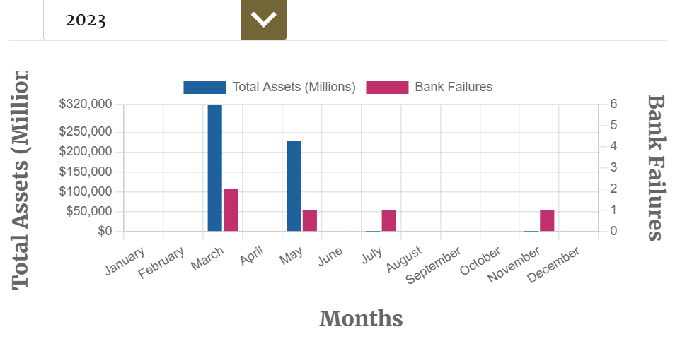 بانک سیلیکون ولی در مارس ۲۰۲۳ و پس از افزایش نرخ بهره که ارزش اوراق قرضه بلندمدت این بانک را بهشدت کاهش داده بود، به دلیل هجوم گسترده مشتریان برای برداشت سپردهها، دچار بحران نقدینگی شد و در نهایت توسط نهاد نظارتی مالی کالیفرنیا تعطیل شد. این بانک اولین بانک تحت پوشش بیمه FDIC بود که در آن سال ورشکست شد.