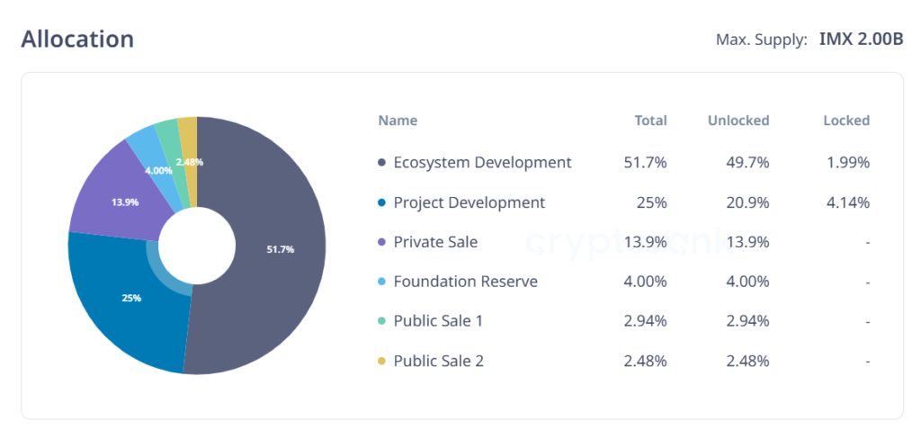 پروژه Immutable بیشتر این توکنهای آزادشده را برای توسعه اکوسیستم خود اختصاص میدهد. همچنین حدود ۵٪ از این توکنها برای فروش عمومی کنار گذاشته شده است.