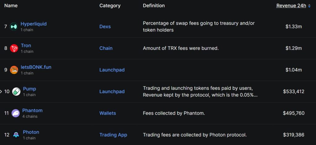 به گزارش میهن بلاکچین و طبق دادههای جدید پلتفرم دیفای لاما (DefiLlama)، لتسبونک در ۲۴ ساعت گذشته بیش از ۱.۰۴ میلیون دلار درآمد داشته و از ۵۳۳٬۴۱۲ دلار رقیب سرسخت خود یعنی پامپفان عبور کرده است. این اتفاق تحولی کمسابقه در بازار میم کوینهای سولاناست چراکه پامپفان معمولا همیشه در صدر جدول درآمدها قرار دارد.