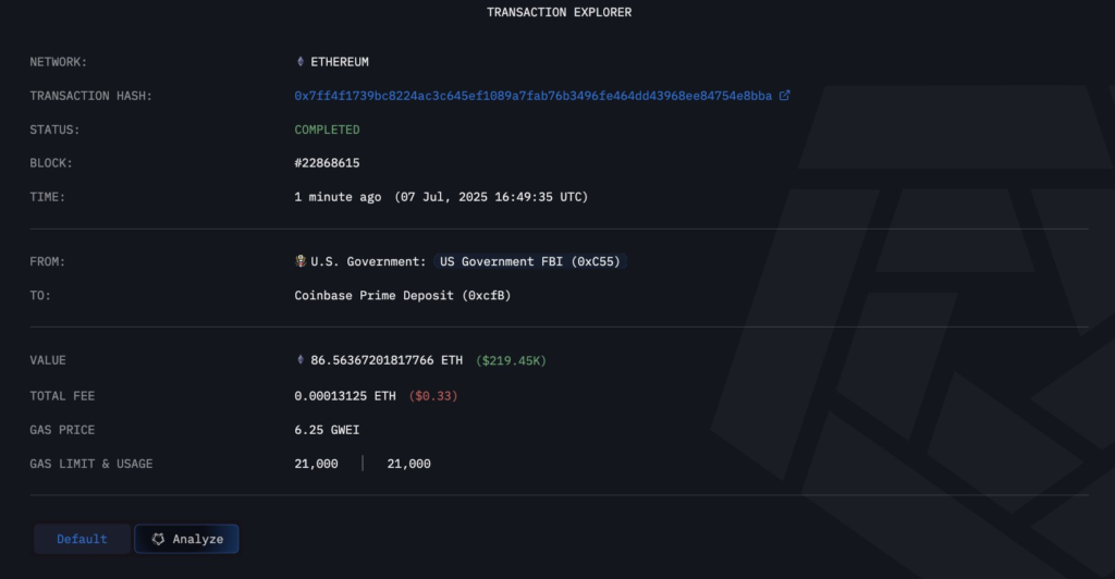 دولت آمریکا ذخایر عظیمی از بیت کوین در اختیار دارد که از فعالیتهای مجرمانه مختلف مصادره شده است. هر زمان که بخشی از این داراییها را نقد میکند، بازار دچار نوسان میشود و جامعه کریپتو بهشدت به این رویدادها واکنش نشان میدهد. امروز، شرکت آرکهام اینتلیجنس (Arkham Intelligence) کشف کرد که دولت آمریکا حدود ۲۱۹٬۰۰۰ دلار اتریوم به کوینبیس منتقل کرده است.