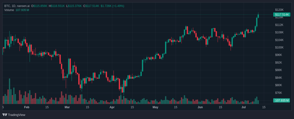 تمام این اظهارنظرها همزمان با رسیدن بیت کوین به رکورد جدیدی مطرح شد. BTC در روز پنجشنبه از سطح ۱۱۲,۰۰۰ دلار عبور کرد. در زمان نگارش این گزارش، قیمت بیت کوین به حدود ۱۱۸,۰۰۰ دلار رسیده است. طی ۲۴ ساعت گذشته، قیمت آن حدود ۶٪ افزایش یافته است.