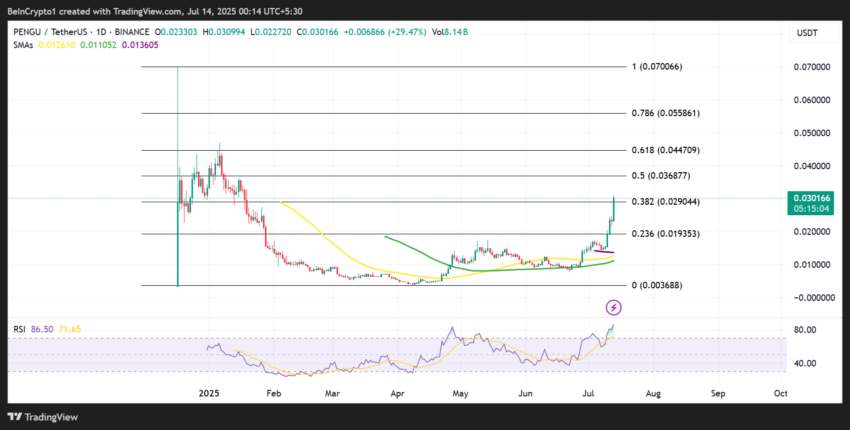 قابلتوجه است که SEC آمریکا چند روز پیش ثبت این درخواست را تأیید کرد که باعث شد قیمت PENGU بیش از ۲۳٪ افزایش یابد و به بالاترین سطح چندماهه برسد.