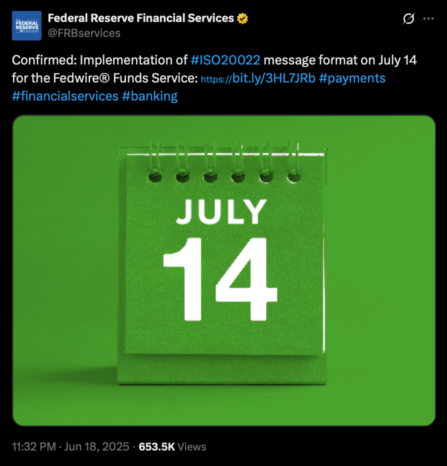 پس از اجرای رسمی استاندارد ایزو ۲۰۰۲۲ (ISO 20022) برای فدوایر فاندز سرویس (Fedwire Funds Service) در روز دوشنبه ۱۴ جولای، توجه بازار به چند آلت کوین جلب شد. در حالی که تحلیلگران رمزارزهای مختلفی را معرفی کردهاند، توکن XRP بیشتر از سایرین مورد توجه قرار گرفت. این توجه به ریپل به دلیل هیجان ایجادشده پیرامون این استاندارد جهانی پیامرسانی مالی شکل گرفته است.