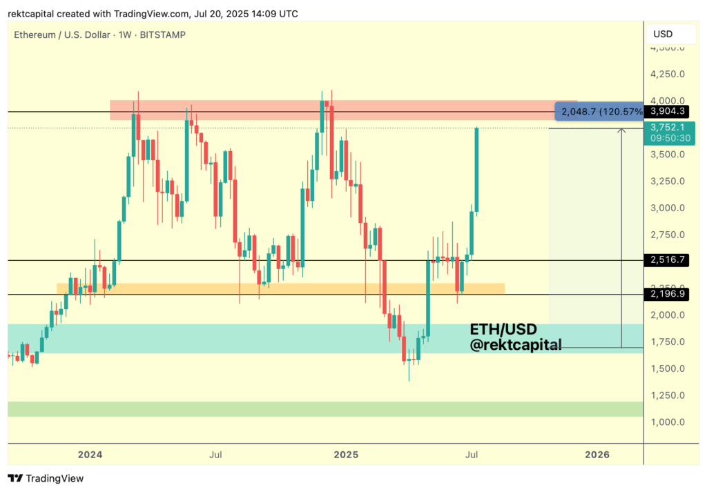 مایکل فان د پوپه (Michaël van de Poppe)، معاملهگر، تحلیلگر و کارآفرین کریپتو، بازگشت قیمت ETH/USD را «کاملاً خارقالعاده» خواند.