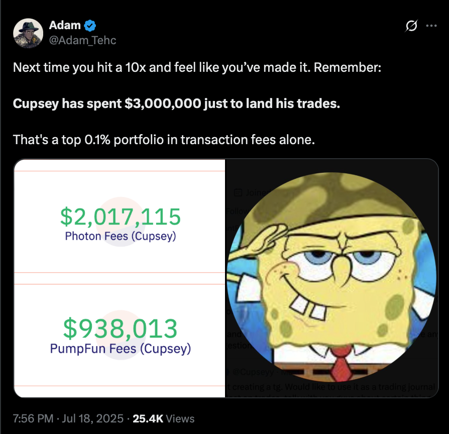 در فهرست ۵۰ کیف پول سودآور برتر، ۴۹ مورد ربات هستند و فقط یکی از آنها واقعی است؛ آن هم کاپسی (Cupsey) است. اکثراً با رباتهای دپلوی، اسنایپ یا تولید حجم مصنوعی طرف هستیم.
