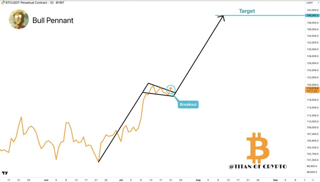 الگوی پرچم صعودی بیت کوین و تارگت ۱۴۰,۰۰۰ دلاری