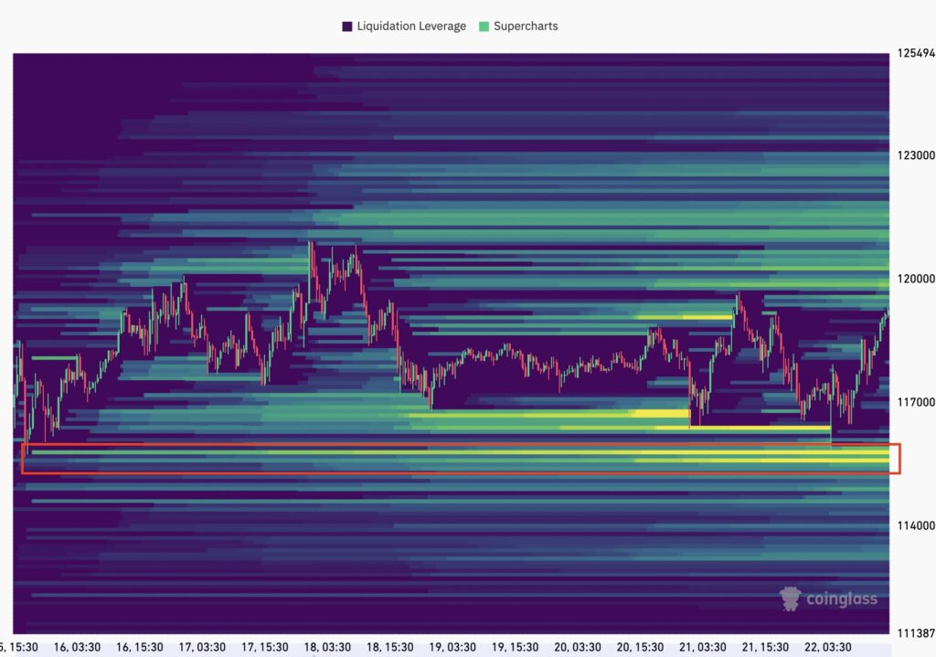 در حالی که در مسیر صعودی تا سطح ۱۲۲,۰۰۰ دلار بخش بزرگی از نقدینگی فروش جذب شده، برخی تحلیلگران هشدار میدهند که ممکن است قیمت برای آزمودن سطح حمایتی ۱۱۵,۰۰۰ دلار، اصلاح موقتی داشته باشد.