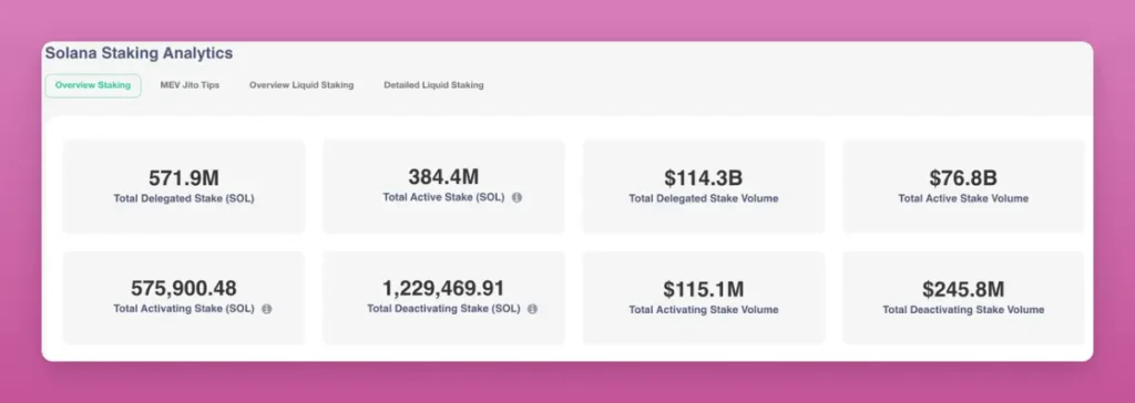 بر اساس دادههای سول اسکن (Solscan)، حدود ۷۱٪ از SOL در گردش در حال استیک شدن است؛ این نسبت برای اتریوم حدود ۳۰٪ است.