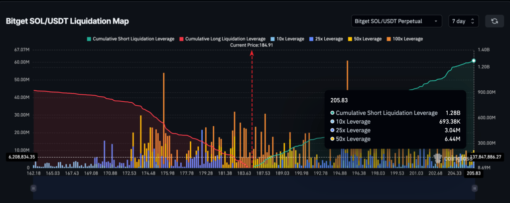 همزمان، دادههای لیکوئیدیشن نیز این روند نزولی را تأیید میکند. در طول ۷ روز اخیر، حجم موقعیتهای فروش (Short) در سولانا به ۱.۲۸ میلیارد دلار رسید، در حالی که حجم پوزیشنهای لانگ (Long) تنها ۹۲۴ میلیون دلار بوده است.