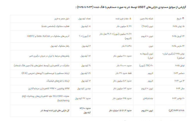 به گزارش میهن بلاکچین، انجمن بلاکچین ایران در این گزارش مدعی شده که در جریان درگیریهای اخیر میان ایران و اسرائیل، حدود ۷۰۰ میلیون دلار تتر مرتبط با کاربران ایرانی فلگ شده است، موضوعی که به گفته این انجمن زنگ خطری جدی برای فعالان بازار داخلی رمزارز به شمار میرود. ضمنا انجمن بلاکچین تاکید کرده که اطلاعات مربوط به آدرسهای فلگشده یا مسدودشده صرفا از منابع خبری خارجی نقل شده و انجمن هیچگونه ادعای مستقلی در این زمینه نکرده است.