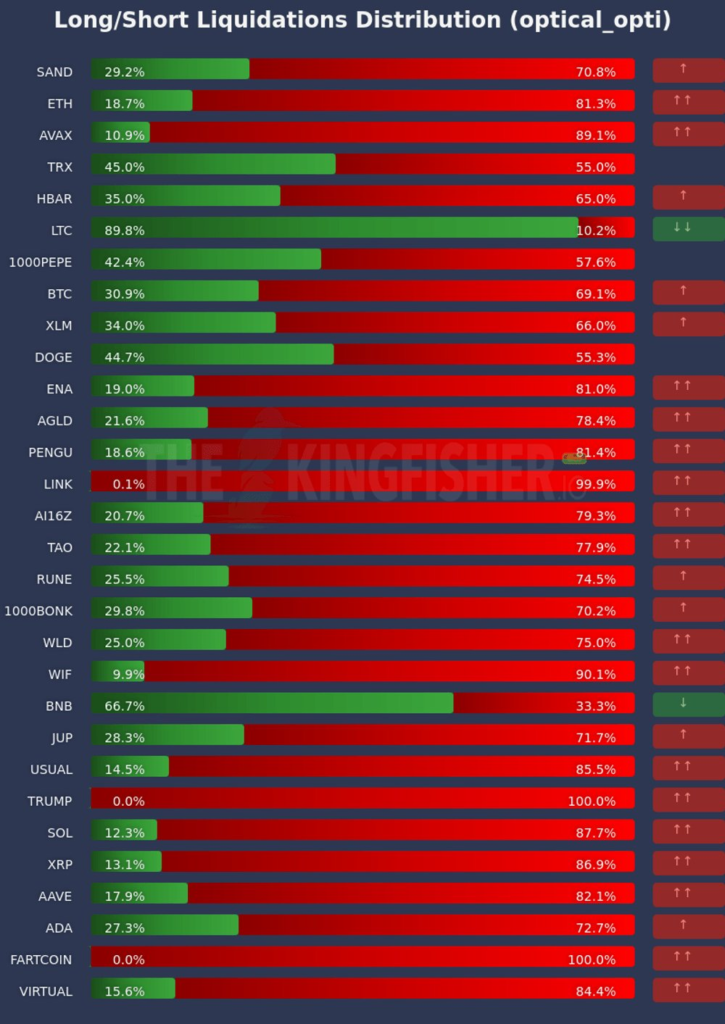 در همین رابطه، حساب معروف دِکینگفیشر (TheKingfisher) در پستی نوشت که بیش از ۷۰٪ از لیکوییدیشنها مربوط به پوزیشنهای شورت در قیمتهای بالاتر هستند: