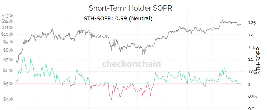 چکآنچین (Checkonchain) نیز در پستی در شبکه اجتماعی ایکس در روز چهارشنبه نوشت که شاخص نسبت سود خروجی خرجشده (STH SOPR) نشان میدهد خریدارانی که بیت کوین را نزدیک به اوجهای تاریخی خریدهاند و اکنون در زیان هستند، بیش از خریداران اخیرِ در سود اقدام به فروش میکنند.