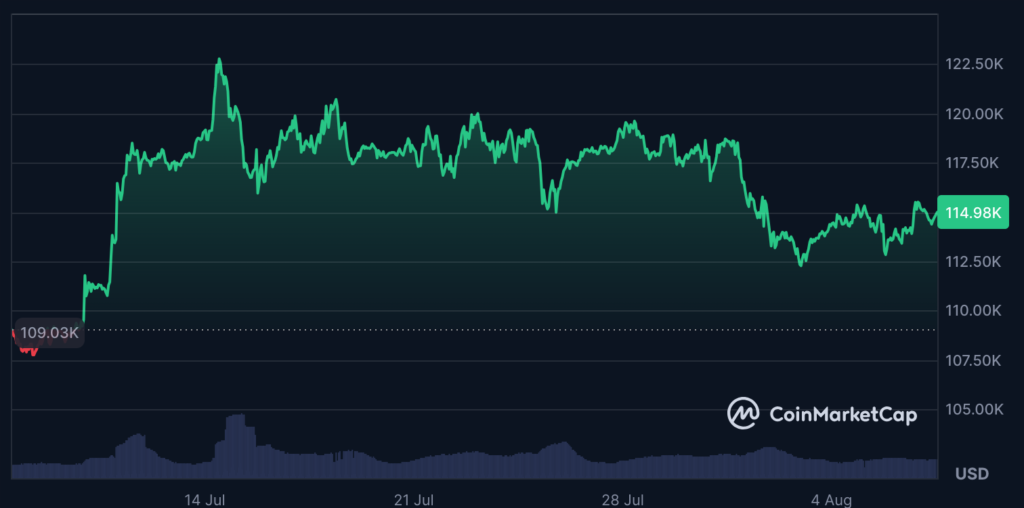 قیمت بیت کوین در طول ۲۴ ساعت گذشته ۰.۶۸٪ افزایش یافت و در زمان نگارش مطلب به ۱۱۴,۹۵۴ دلار رسید.