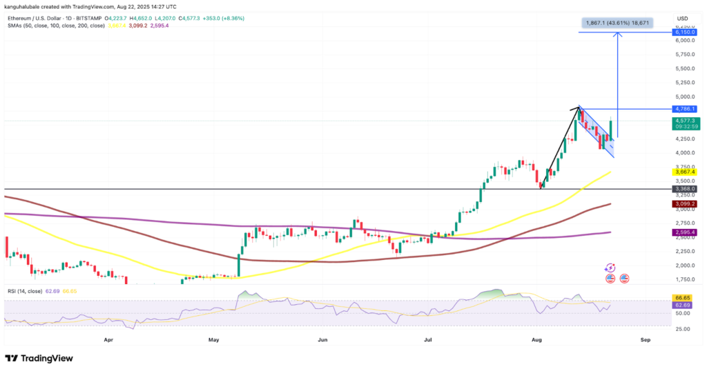 تنها چند دقیقه پس از شروع رشد، قیمت اتریوم از سطح ۴,۲۰۰ دلار جهش کرد و مرز ۴,۶۰۰ دلار را که طی هفت روز گذشته به عنوان مقاومتی سرسخت عمل کرده بود و همچنین سقف تاریخی را دوباره پس گرفت. دادهها این بازگشت سریع را تأیید میکنند.