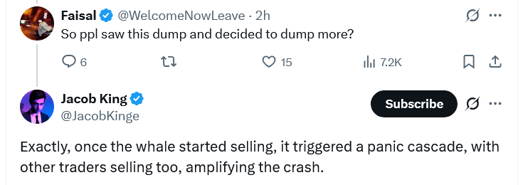 به گفته MLM، استراتژی این نهنگ بهگونهای طراحی شده بود که معاملهگران سریعالسیر بازار را جلو بزند و آنها را ناخواسته در دام فشار فروش قرار دهد. او نوشت: