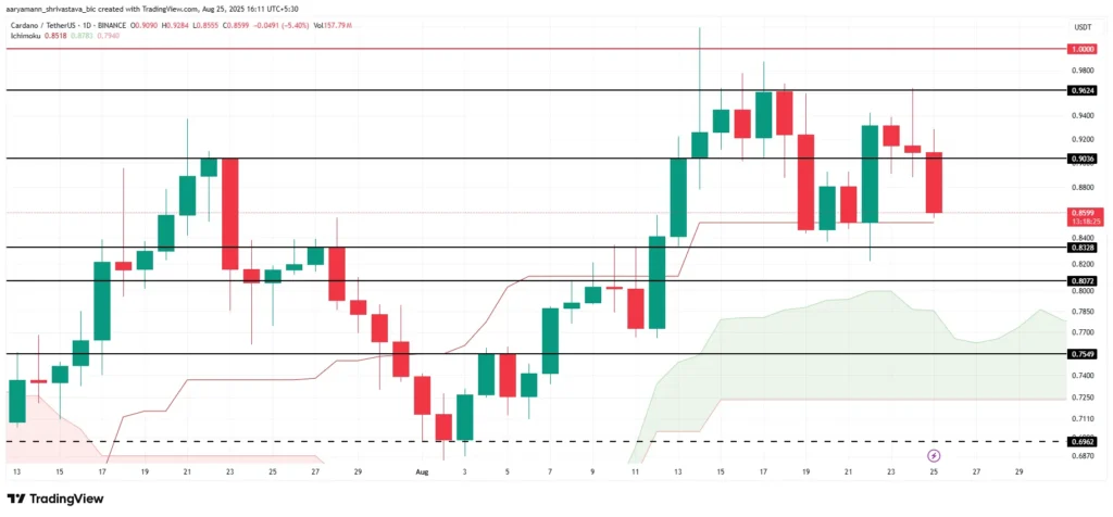 قیمت کاردانو در زمان نگارش ۰.۸۴ دلار است و بالای سطح حمایتی ۰.۸۳ دلار تثبیت شده است. ابر ایچیموکو چشماندازی صعودی را برای این رمزارز نشان میدهد و به سرمایهگذاران سیگنال تداوم حرکت مثبت میدهد.