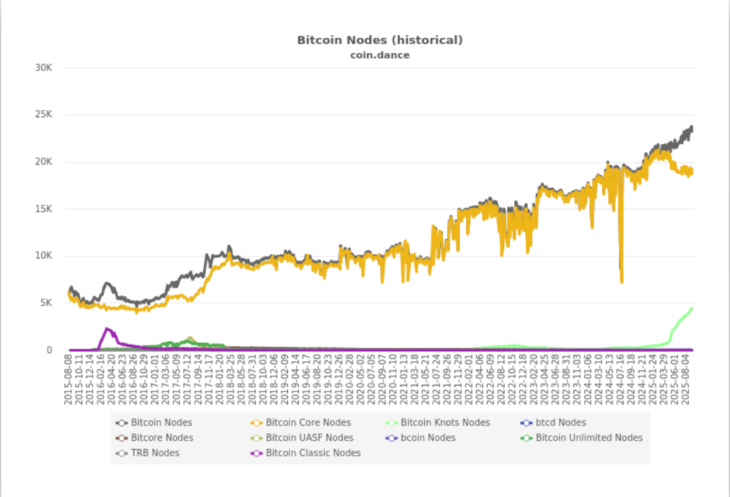 این تصمیم پیشنهادی، موجی از مخالفت را برانگیخته و باعث یک جهش تاریخی در استفاده از Bitcoin Knots شده است. Bitcoin Knots یک نرمافزار جایگزین برای نود بیتکوین است که قابلیتهای شخصیسازی بیشتری را به اپراتورها میدهد؛ از جمله این امکان که خودشان برای میزان دادههای OP_Return
