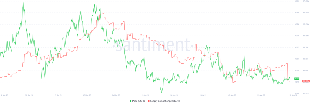 با این حال، دادههای سنتیمنت (Santiment) چشمانداز مثبتی ارائه میدهد. قیمت این توکن از ابتدای سال – حتی با وجود افزایش ذخایر صرافیها – در حدود ۲ دلار ثابت مانده است. در سپتامبر، ذخایر پس از رسیدن به اوج خود شروع به کاهش کرده است که نشانهای از بازگشت روند انباشت تلقی میشود.