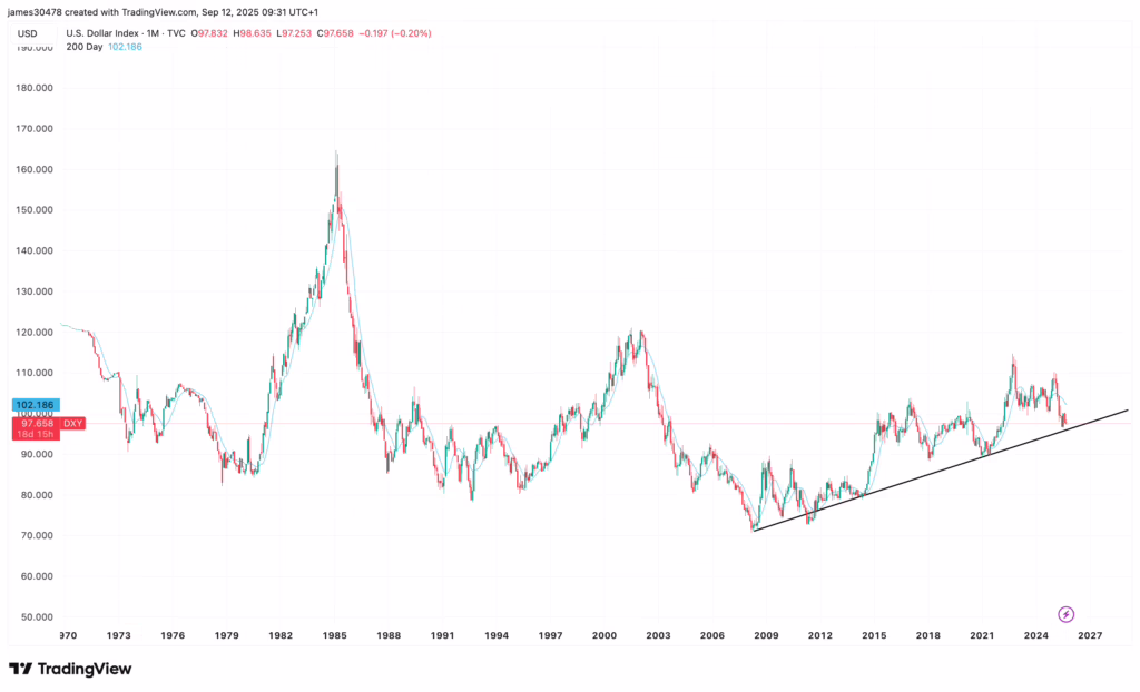 با این حال، شاخص دلار (DXY) همچنان بالاتر از یک سطح حمایتی چندساله حفظ شده است و این سطح میتواند در آینده نزدیک تعیینکننده باشد.