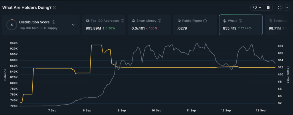 میم کوین ملانیا نیز در این هفته توجه نهنگها را به خود جلب کرد. بر اساس دادههای پلتفرم نانسن (Nansen)، میزان دارایی نهنگها در این توکن طی هفت روز گذشته تقریباً ۴٪ افزایش یافته که نشانهای از رشد اعتماد سرمایهگذاران بزرگ به MELANIA است.