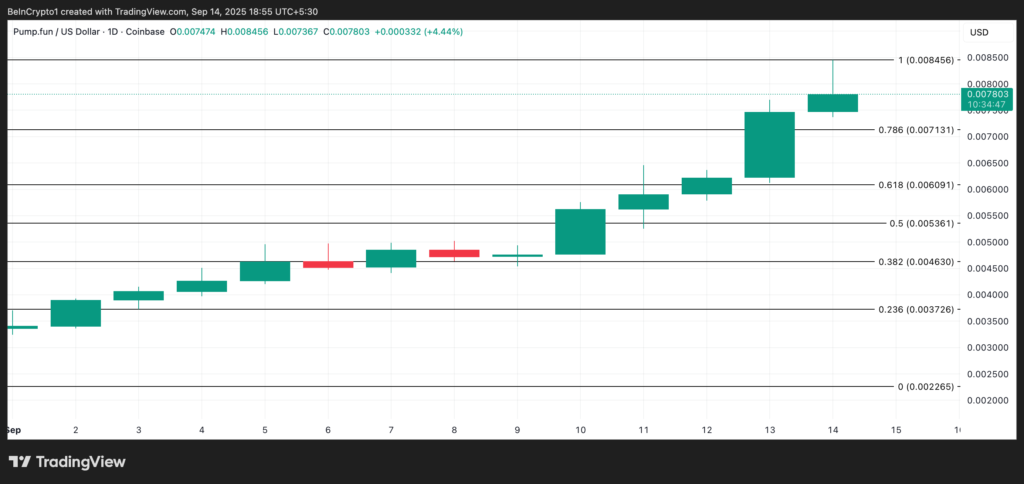 در زمان نگارش این خبر، قیمت PUMP در سطح ۰.۰۰۷۸۰۳ دلار – کمی پایینتر از اوج اخیر ۰.۰۰۸۴۵۶ دلار – قرار دارد. در صورتی که فشار خرید افزایش یابد، احتمال بازپسگیری سقف تاریخی و حتی عبور از آن وجود دارد.