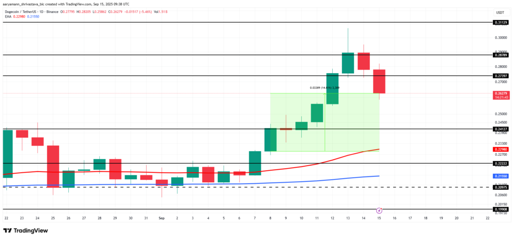 با این حال، خطر فروش همچنان وجود دارد. اگر هولدرهای DOGE اقدام به فروش کنند، فشار عرضه میتواند باعث کاهش قیمت شود. در این صورت، دوج کوین احتمالاً تا سطح حمایتی ۰.۲۴۱ دلار سقوط میکند؛ این افت میتواند روند صعودی را متوقف کرده و حتی فشار نزولی بیشتری ایجاد کند.