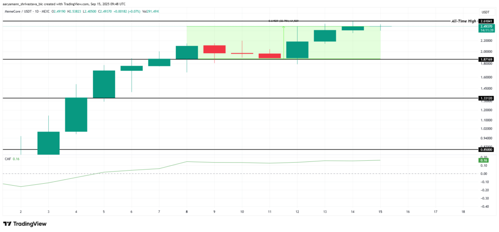 شاخص جریان پول چایکین (CMF) ورود پیوسته سرمایه به این توکن را نشان میدهد. این موضوع بیانگر اعتماد بیشتر سرمایهگذاران است. اگر این روند ادامه پیدا کند، M میتواند مقاومت ۳.۰۰ دلاری را بشکند. حمایت خریداران برای عبور از این سطح ضروری است و میتواند به ادامه روند صعودی کمک کند.