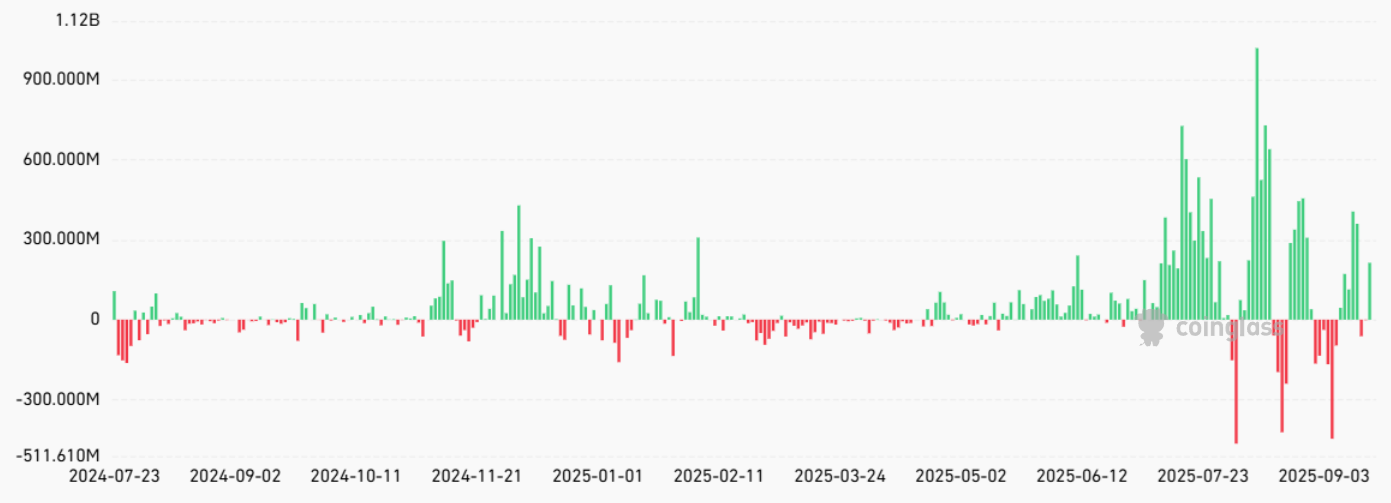 تنها در یک روز اخیر، ورودی خالص ۲۱۳ میلیون دلاری به این ETFها ثبت شد. در همین حال، موجودی اتریوم در صرافیها به پایینترین سطح پنج سال گذشته کاهش یافته و بیش از ۲.۶۹ میلیون ETH طی دو ماه اخیر از صرافیها خارج شده است؛ این روند، بهصورت آشکارا بیانگر فاز انباشت است.