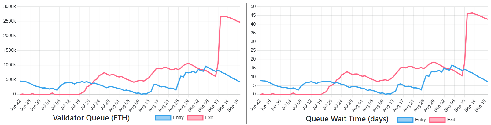 اما سوی دیگر ماجرا به صف بیسابقه خروج از استیکینگ برمیگردد. طبق دادههای موجود، ۲.۶۷ میلیون ETH در انتظار خروج ثبت شدهاند؛ این رقم، زمان انتظار را به حدود ۴۶ روز رسانده است. البته خروج از استیکینگ الزاماً بهمعنای فروش فوری نیست، اما کوچکتر شدن صف ورود سرمایهگذاران به استیکینگ، نگرانیهایی ایجاد کرده است.