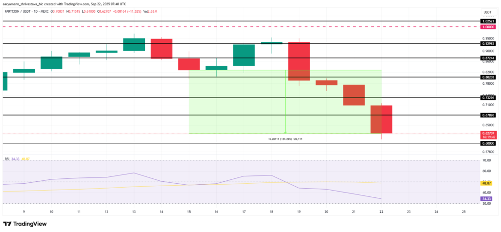 شاخص قدرت نسبی (RSI) اکنون در آستانه ورود به ناحیه اشباع فروش است؛ این محدوده اغلب نشانهای از احتمال جهش محسوب میشود. اگر چنین بازگشتی رخ دهد، قیمت فارت کوین میتواند از سطح حمایتی ۰.۶۰۰ دلار حرکت کند و به اهداف ۰.۶۷۸ و حتی ۰.۷۳۲ دلار برسد.